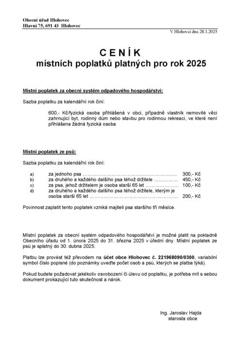 Úvod > Aktuálně > Aktuality > Ceník místních poplatků 2025