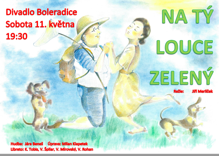 Dne 11.5.2024 v 19:30 hod. pořádá divadlo Boleradice představení "Na tý louce zelený". Vstupenky je možné si rezervovat na webových stránkách divadla www.boleradice-divadlo.cz nebo zakoupit přímo na pokladně hodinu před představením.