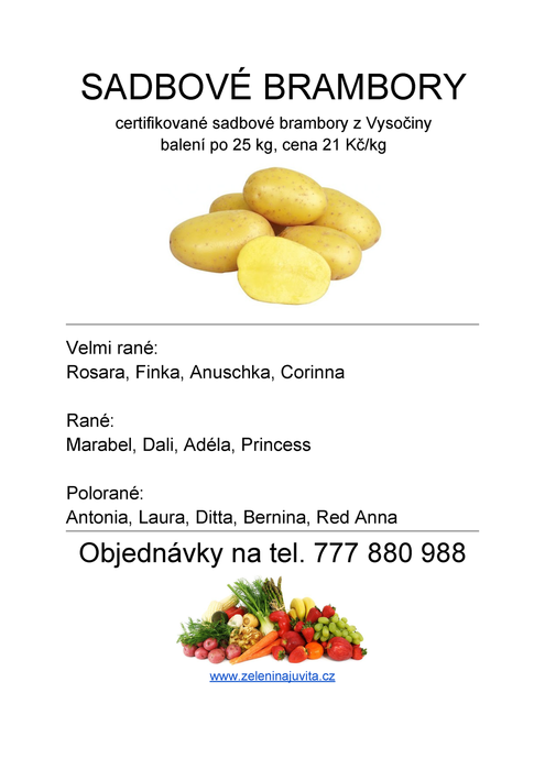 Řidič přijímá objednávky na sadbové brambory na telefonním čísle: 777 880 988