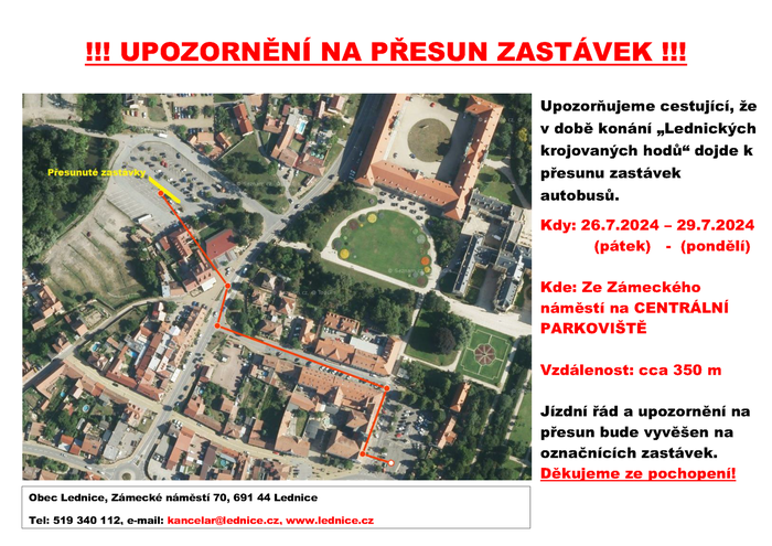 Upozorňujeme cestující, že v době konání „Lednických krojovaných hodů“ dojde k přesunu zastávek autobusů.