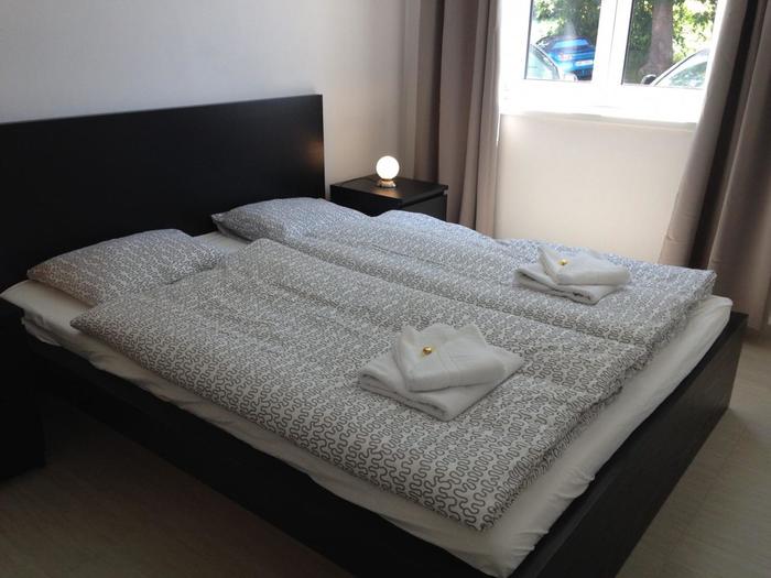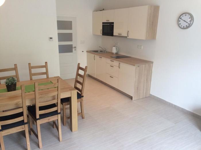 Nabízíme Vám ubytování ve 2 samostatných plně vybavených apartmánech, každý o rozloze 78 m2 s terasou 16 m2 a společnou zahradou 235 m2. Pod terasou je vybudovaný malý sklípek, který lze využít např. pro úschovu kol.