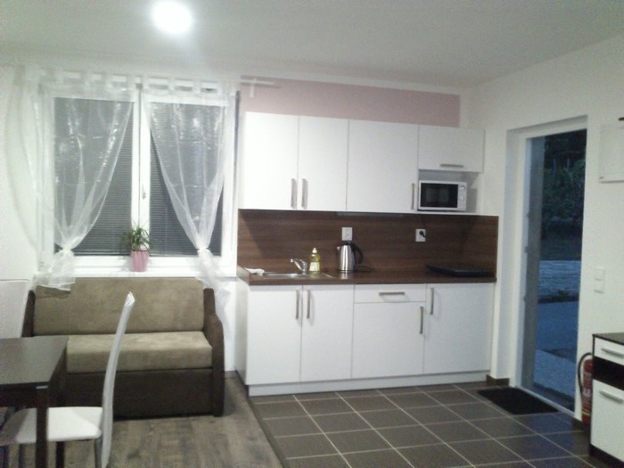 Oba apartmány jsou klimatizovány, mají plně vybavenou kuchyňku včetně lednice (bez mrazáku), mikrovlnou troubu, rychlovarnou konvici, sklokeramickou varnou desku ("A" dvouplotýnku, "B" čtyřplotýnku), LCD televizi a wifi.