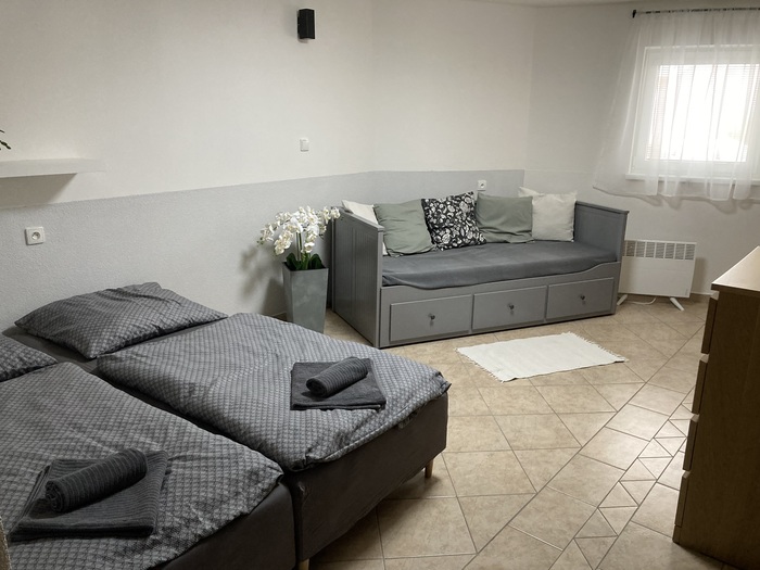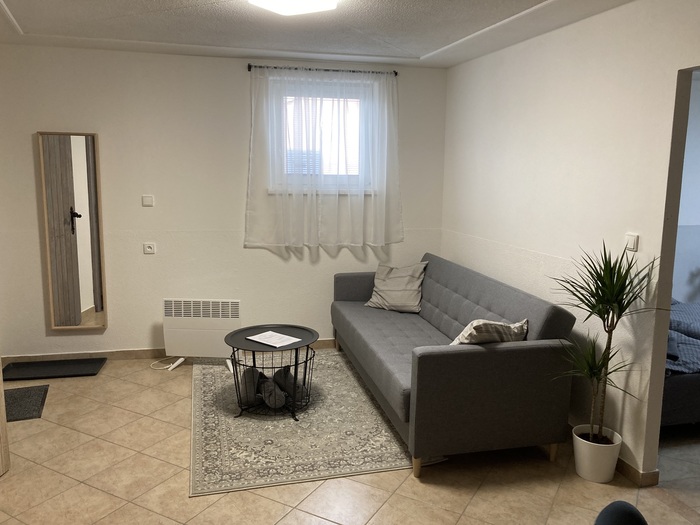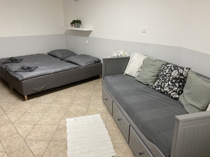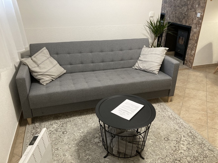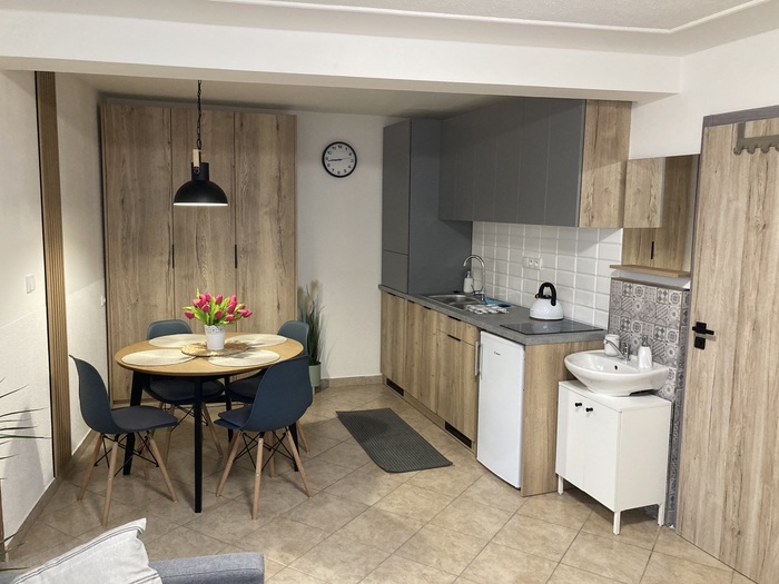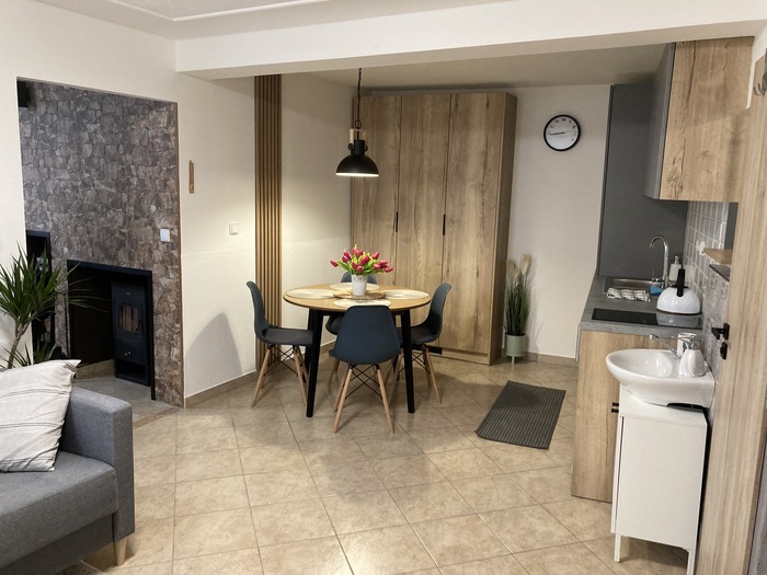 Apartmán se samostatným vchodem je 4-lůžkový s možností přistýlky (rozkládací pohovka o rozměru 190x130cm) vyspí se zde dvě děti nebo dvě útlé osoby :). Je k dispozici je během celého roku. Kuchyně apartmánu je funkčně vybavená, poslouží Vám keramická varná deska, mikrovlnná trouba, topinkovač i lednička. Umístěn je zde i jídelní stůl. V ložnici s krbovými kamny a televizi najdete manželskou postel a rozkládací postel 200x160cm. V apartmánu je samozřejmě i koupelna se sprchovým koutem a oddělenou toaletou.