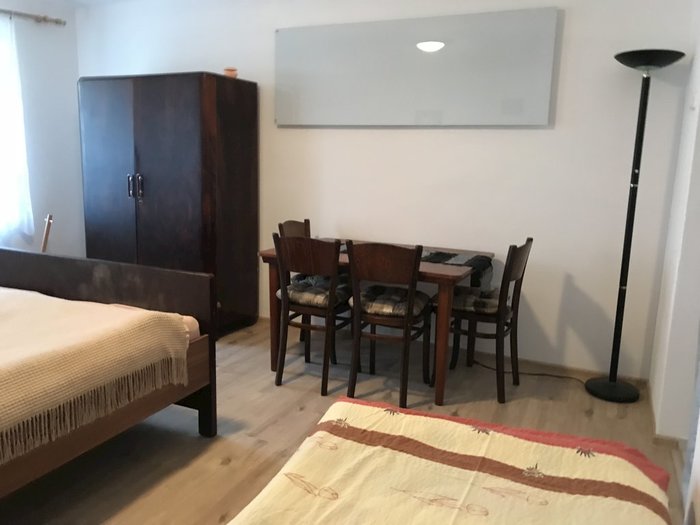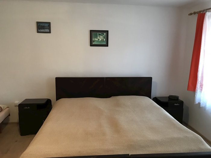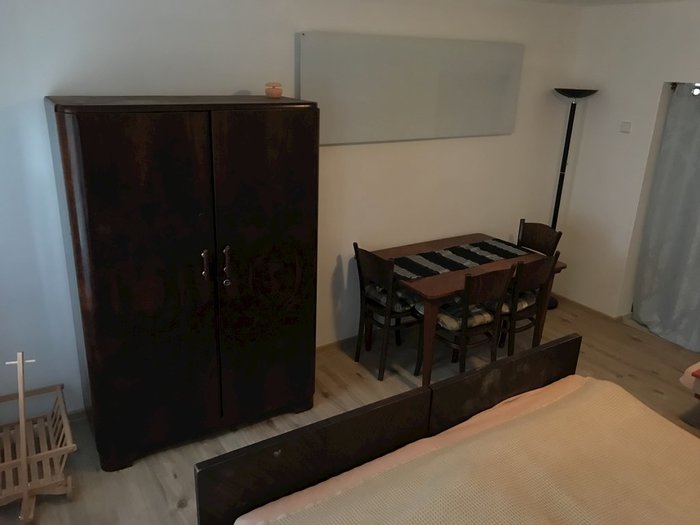 K dispozici je Vám jeden apartmán se dvěma ložnicemi. Vybavení apartmánu tvoří obývací místnost s krbem, společenskými hrami, minibarem (možnost zakoupení si skvělých odrůd vín, přímo od vinaře) a rozkládacím gaučem, který poslouží i jako přistýlka pro dvě osoby. Chutné domácí jídla si uvaříte v plně vybavené kuchyni s jídelním posezením, elektrickou troubou, keramickou varnou deskou, mikrovlnnou troubou, rychlovarnou konvicí, myčkou nádobí, pračkou, ledničkou a mrazákem. Klidný spánek si dopřejete v jedné ze dvou ložnic s manželskou postelí a samostatným lůžkem. V případě potřeby Vám zabezpečíme i dětskou postýlku s povlečením. Vaši nejmenší se potěší hračkám nacházejícím se v jedné z ložnic. Samozřejmostí apartmánu je i vlastní koupelna s umyvadlem, sprchovým koutem, ručníky na ruce, sušákem na prádlo a toaletou. WiFi připojení na internet je pro Vás zajištěno v celém objektu.