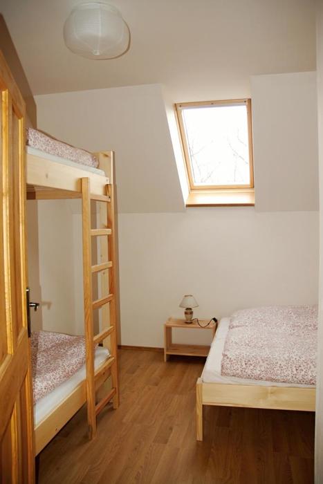 Domek pro rekreaci má kapacitu 9 lůžek + možnost přistýlek. Ve spodní části je velká společenská místnost s bohatě zařízeným kuchyňským koutem, vytápěna krbovými kamny. Dále je zde koupena se sprchovým koutem a hala. V horní části jsou 2 pokoje (5 lůžkový a 4 lůžkový), WC a hala. Pokoje jsou vytápěny elektrickým podlahovým topením.