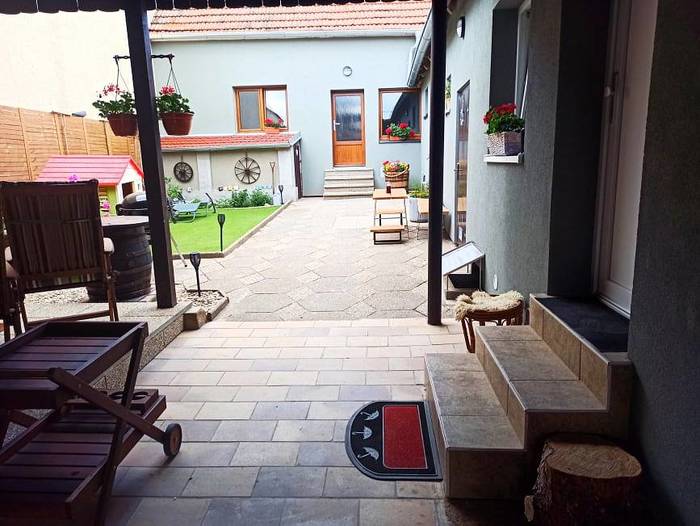 Každá jednotka má na dvorečku svůj kout a své nerušené soukromí. Když do něho vejdete, pohltí vás venkovská atmosféra, kde najdete i menší bylinkovou zahrádku. Můžete si zde posedět, něco ugrilovat, popíjet, opalovat se, atp. Pro děti tu máme koutek, kde si určitě vyhrají. Úschovna kol zajištěna. Parkování je přímo u penzionu. Domácí mazlíčci zde bohužel nemají přístup.