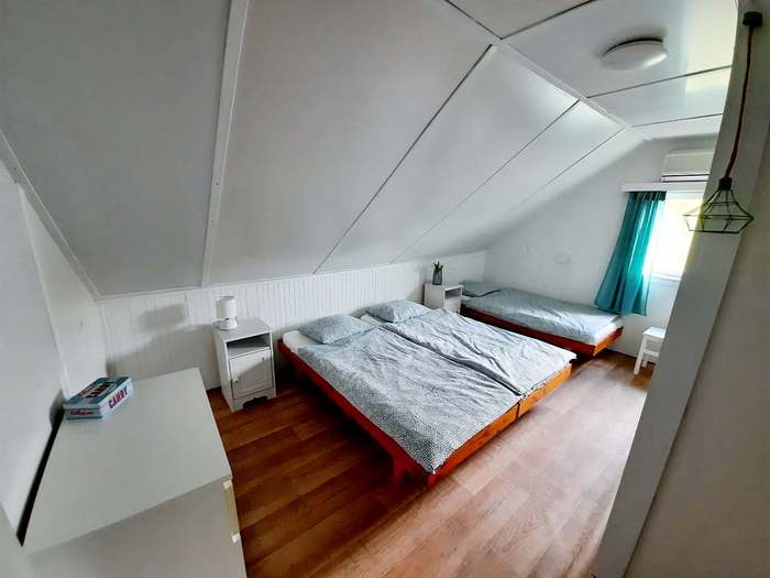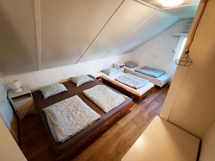 • Ubytování - pokoje: Můžeme Vám nabídnout ubytování pro 9 osob, rozdělených celkem do 3 samostatných ložnic - 1x pětilůžková, 1x dvoulůžková a 1x jednolůžková ložnice + je možnost jedné přistýlky na gauči.