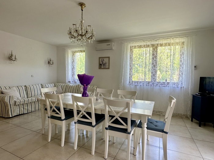 Dům je vybaven klimatizací a zatemňovacími žaluziemi na oknech, které brání přímému slunečnímu světlu.