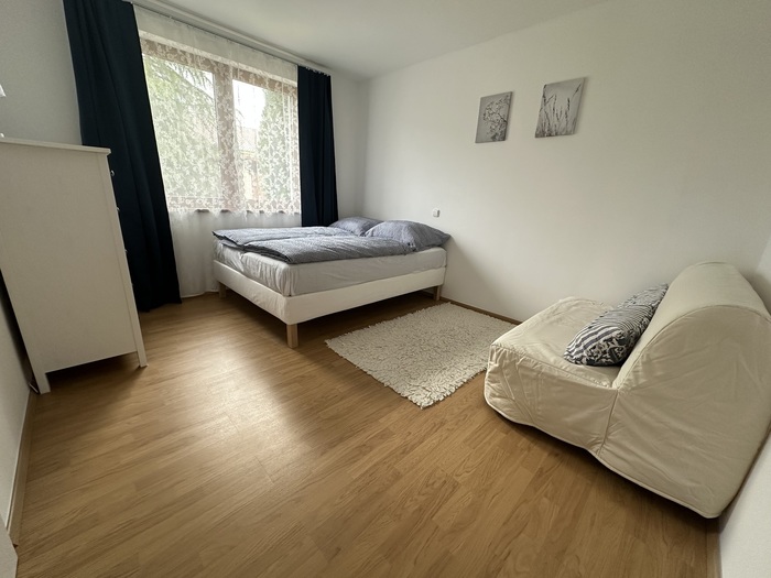 V každé ložnici je manželská postel, v jednom z pokojů ještě rozkládací pohovka pro další osobu nebo dvě děti