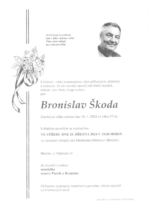 Úvod > Aktuálně > Úmrtní oznámení > Zemřel pan Bronislav Škoda