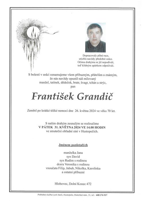 Úvod > Aktuálně > Úmrtní oznámení > Zemřel pan František Grandič
