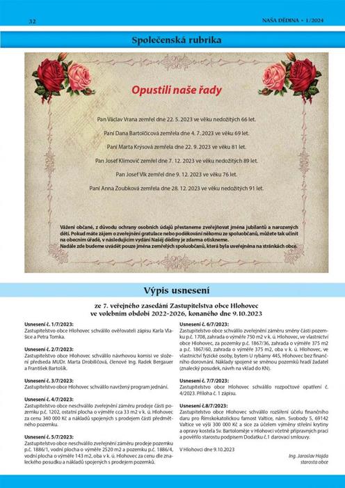 Úvod > Aktuálně > Zpravodaj obce > Naša dědina č. 1/2024